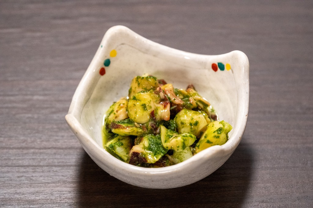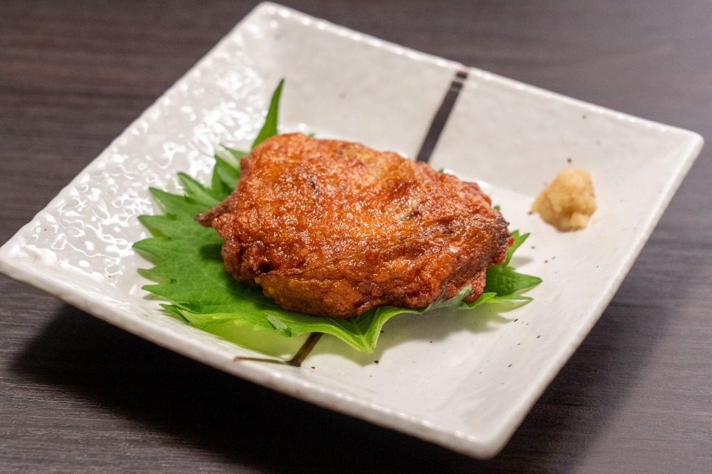 出汁と椎茸が香る塩で食べる珍しいコロッケです。